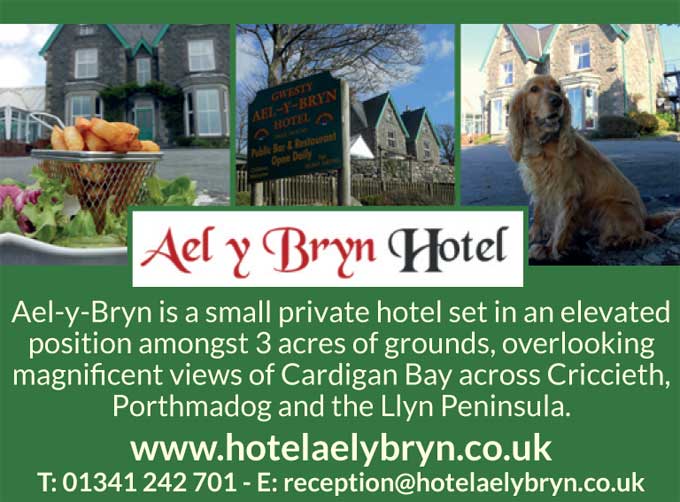 Ael y Bryn is a small private hotel set in an elevated position is 3 acres of grounds overlooking magnificent views of Cardigan Bay across to Criccieth. We are within minutes from the beach with its sandy dunes and safe bathing. We like to preserve a reputation for traditional cooking and our wide variety of meals are freshly prepared using local produce whenever possible.