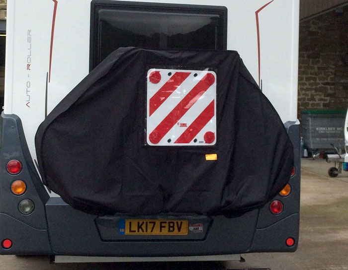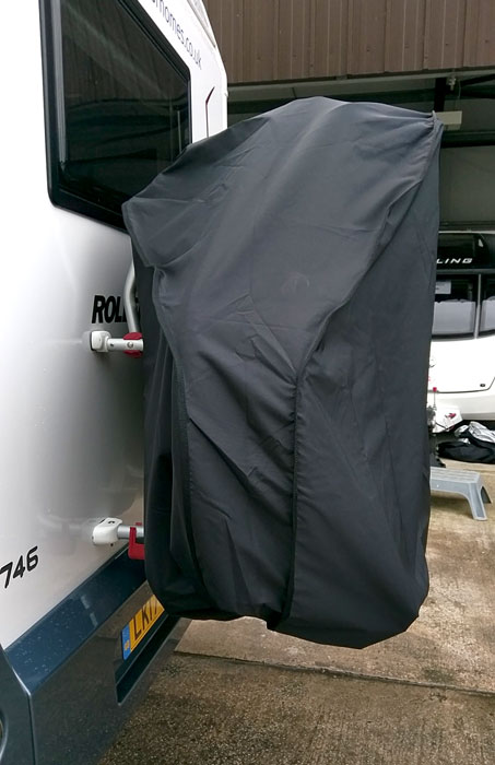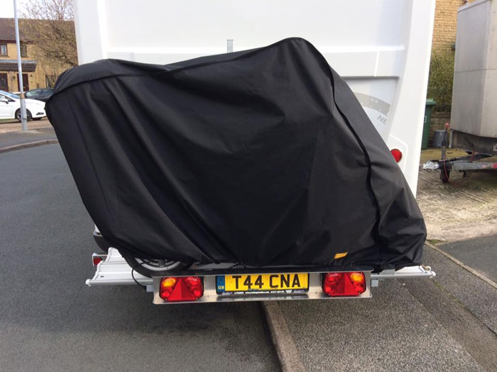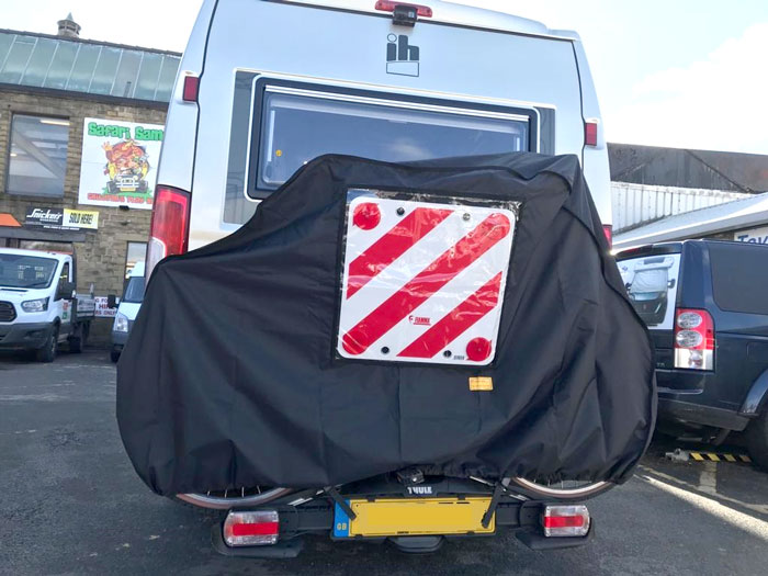 Please note that we do not manufacture covers for offset-mounted bike racks on double-opening doors or for car-mounted tow balls. However, we do offer a specialised cover for bikes with folded handlebars, suitable for both tow ball-mounted and rear racks on motorhomes.